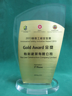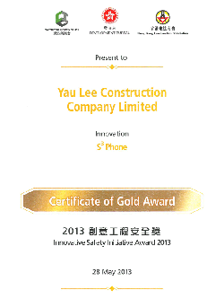 We are proud to inform you that our customer Yau lee Construction Co Ltd, by using our solution - VHSmart™ (S3 Phone" (智能安信寶)), has won the Gold Award of Innovative Safety Initiative Award 2013.