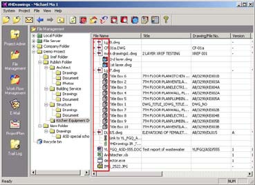 User interface of VHDrawings 2.0 is improved. Main document, its attachments, links, drawing titleboxs and external reference files are represented by different graphical icons to show their relationships. For other files, they will be represented by icons same as those in WindowsR, so that you can understand the content clearly.