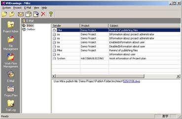 VHDrawings 2.0 improves its email function so that you can read and manage email at ease. When you email or publish drawings, you can click on the file name to directly open the file and the system will move the interface to where the file is.